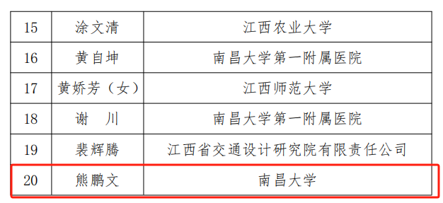 【喜讯】我院熊鹏文教授荣获“2025年江西省科技人才发展基金会青年科学技术奖”